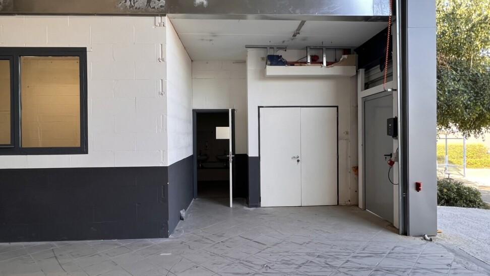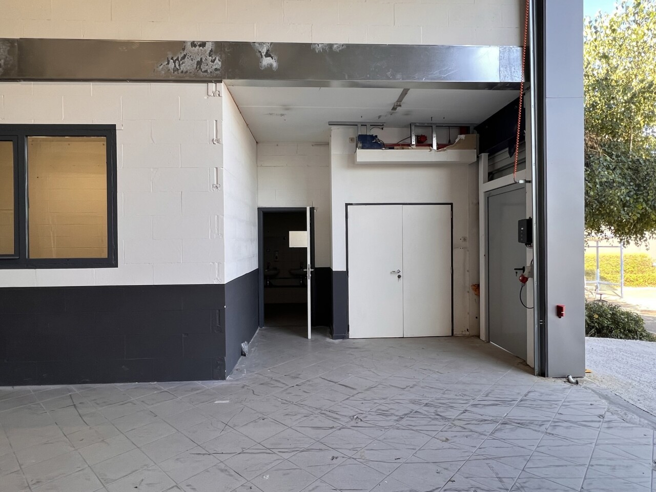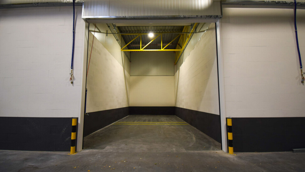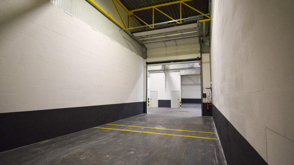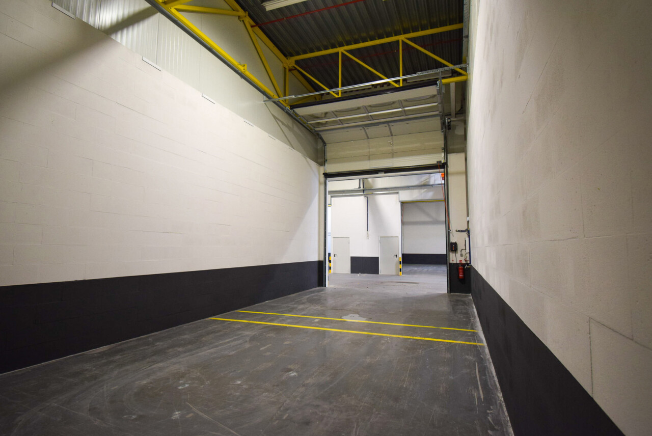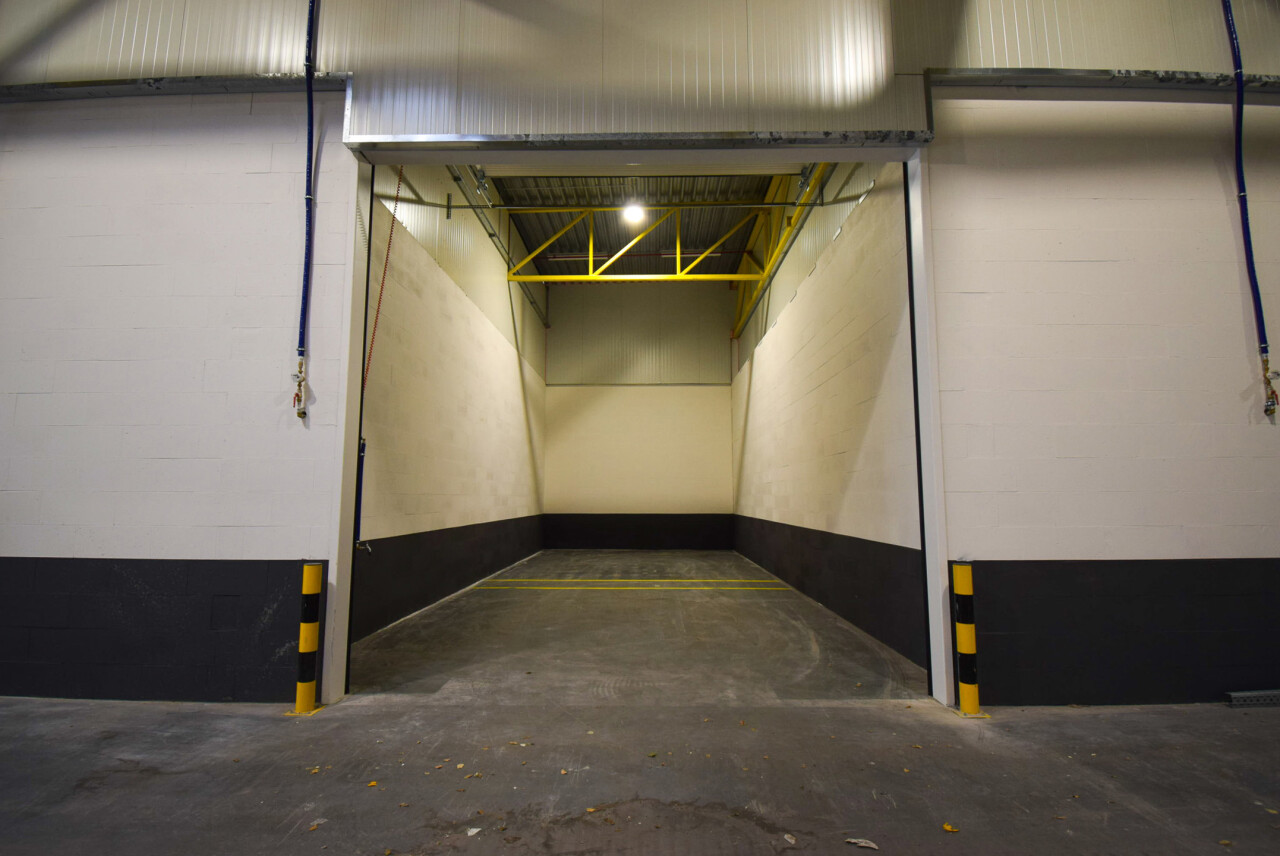 • Sectionaalpoort (4 m hoog x 4 m breed) met aparte toegangsdeur