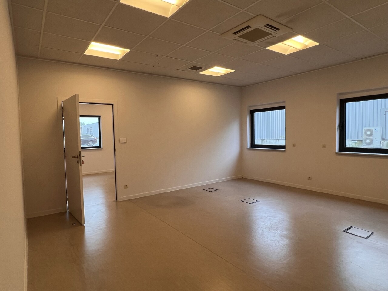 Compact, instapklaar kantoor van 29 m² te huur met veel lichtinval, privatieve airco/verwarming en aparte inkom.