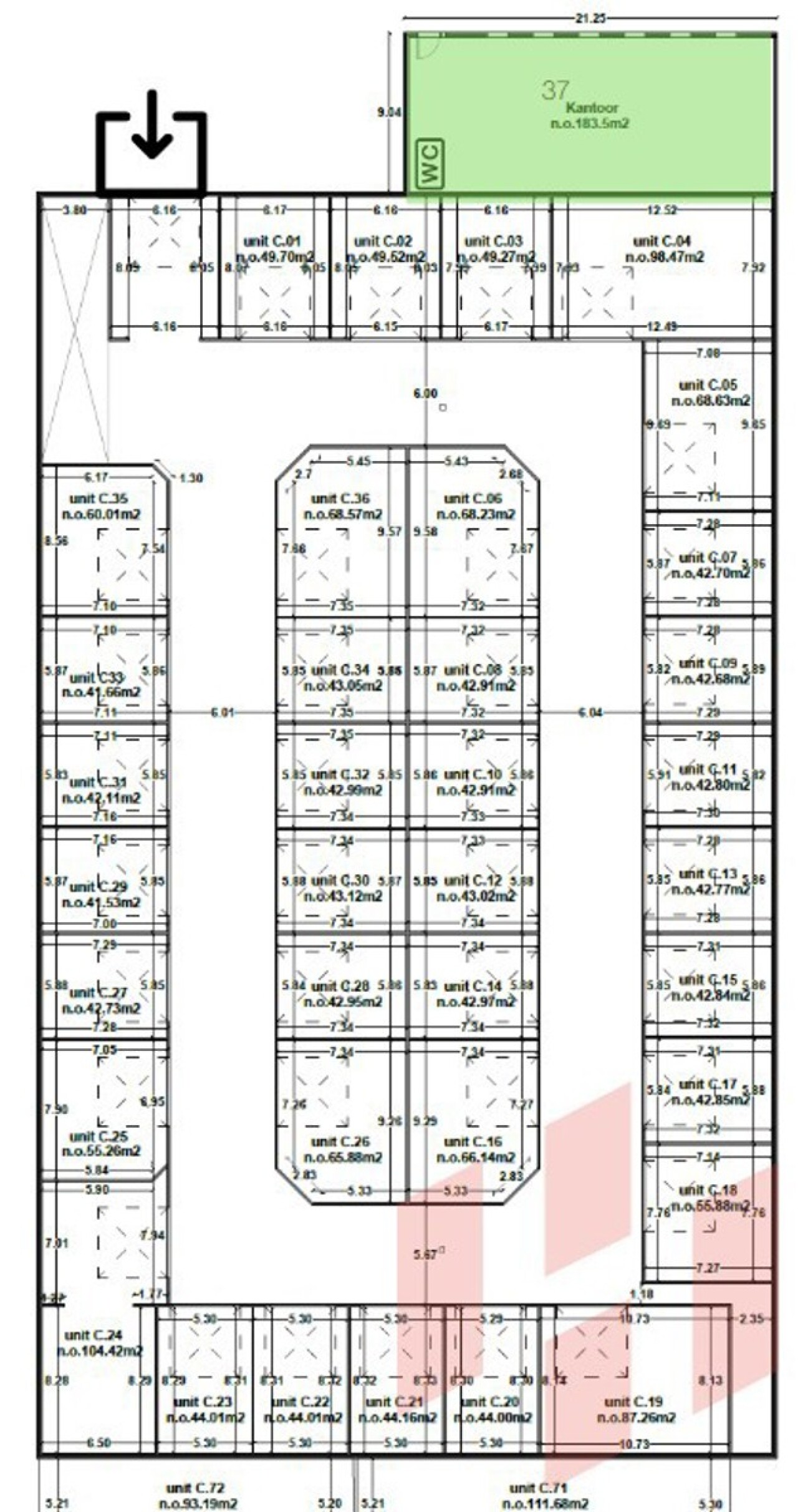 - Aparte toegangsdeur via gemeenschappelijke gang